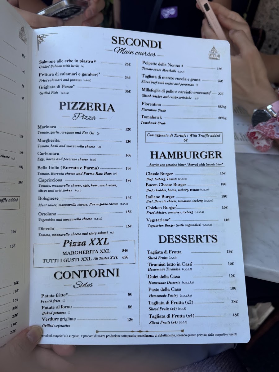 While some diners like Doug and Christopher Lickfold mention the higher prices typical of tourist spots, the allure of enjoying a meal on the sidewalk while soaking in the Vatican ambiance is undeniable. Don’t forget to sample their amazing gelato and exceptional coffee!